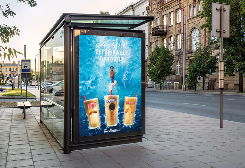 This visually impactful campaign was strategically displayed across various high-traffic streets and prominent retail locations throughout Dubai, ensuring maximum visibility and audience engagement. The designs not only highlighted the exciting new flavors but also reinforced Tim Hortons’ identity as a go-to destination for cooling off during the summer months. By combining creativity with strategic placement, the billboard series successfully attracted attention, increased footfall, and enhanced brand awareness across the city.